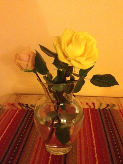 The yellow and peach roses you gave me on our second date last Sunday are still blooming on my dining room table. I find it ironic that they’ve outlived our dating venture. Today the yellow one is in full beautiful bloom. It still makes me smile every time I see it.