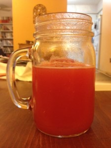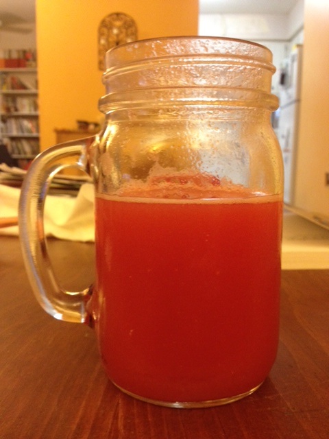 Today I kept up the activity in the kitchen, and I made watermelon aguas frescas, which is basically watermelon, ice, lime, and sugar blended together. It’s a favorite drink from a childhood near the Mexican border.